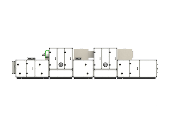 低露點轉(zhuǎn)輪除濕的原理是將經(jīng)過二級轉(zhuǎn)輪處理的再生空氣的熱量傳遞至前級再生區(qū),從而降低未加熱的再生空氣的含濕量。當(dāng)轉(zhuǎn)輪轉(zhuǎn)到預(yù)處理區(qū)時,冷卻預(yù)處理區(qū),低溫除濕效率提高。熱量又被加熱前的再生空氣吸收,同時提高了再生空氣的溫度。這樣就有效降低了再生加熱器的能耗,而且除濕后的空氣溫度較低,低露點處理可以使空氣中的含水量降低至0.5~1g,使空氣中的水蒸氣更難結(jié)露,達(dá)到降低再生能耗和降低空氣露點值的目的。
